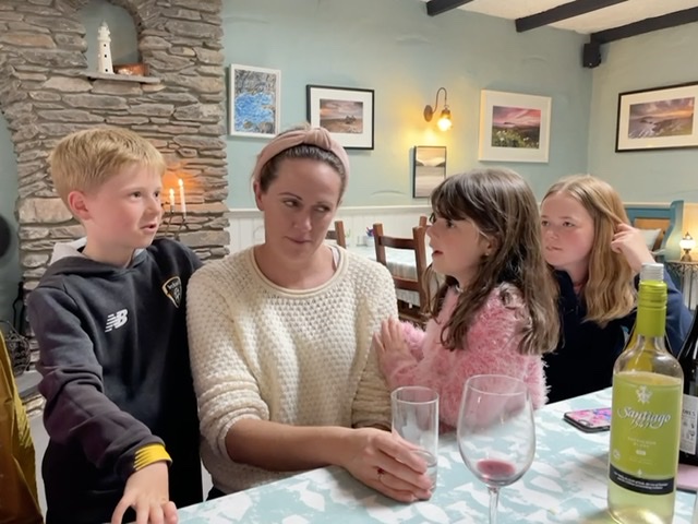 Skeptical look on Caroline’s face.